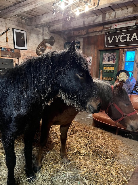 From the church comes the first fire engine, followed by the second, as well as a cool neighbour with a serious tractor, picked up after a night shift at work. People jump up, put together a bunch of floodlights, say, OK, let's put the slings under the horse and try to crawl out together. We put those slings in, the water is icy with mud, our hands hurt to the point of nausea, valio – we're through. The firemen take over the sling, we put another one through, they cut the branches with their saw, we hang the sling behind the quad and start pulling together. Two firefighters sink to their knees in the same aquifer. They climb out, we right ourselves and pull again. Peron clings with his front legs, we continue pulling, his legs go numb, we don't give up, one – two – tryyys and we pull him out lying on the snow. We think for a moment about his condition, then the gentleman stands up and with all the ropes he goes across the pasture to the barn," the owners say.