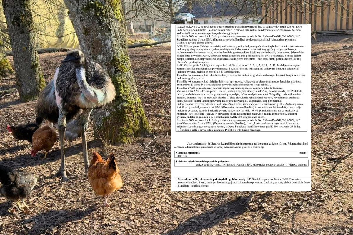 Nature wardens fine farmer Petras Šiaučiūnas €500 for illegal possession of ostrich
